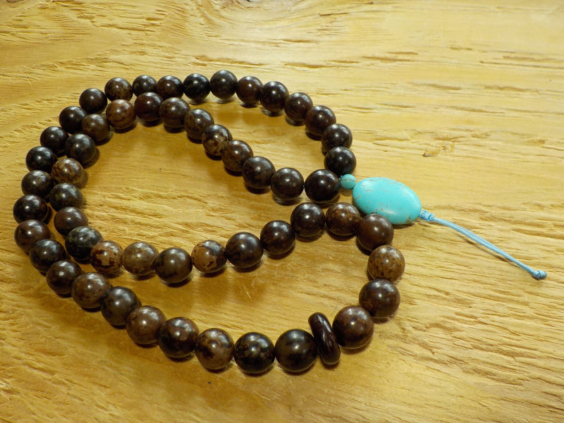 Palm Nut (aka "Bodhi Root) with rosewood disc dividing 27s, magnesite guru bead.