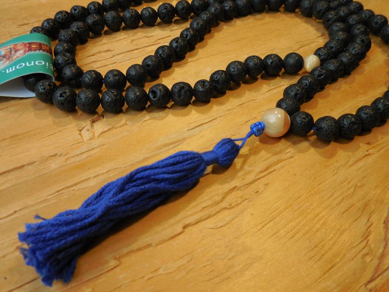 Lava Rock with mother of pearl dividing 54s and as guru bead.