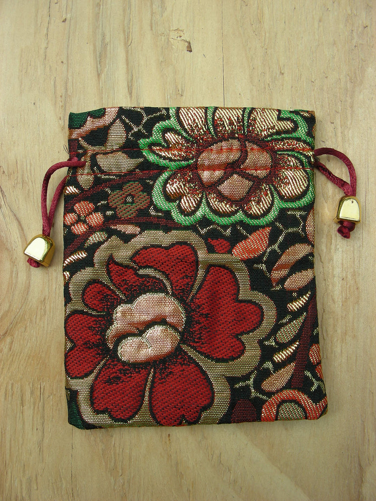 Nylon Floral pouch with drawstring.