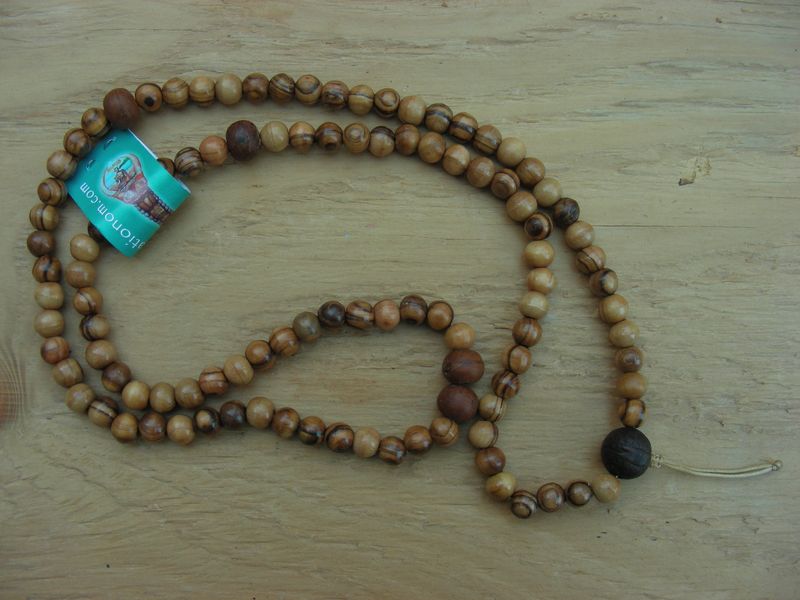 Olivewood with Nepali bodhi at the 27s and guru bead.