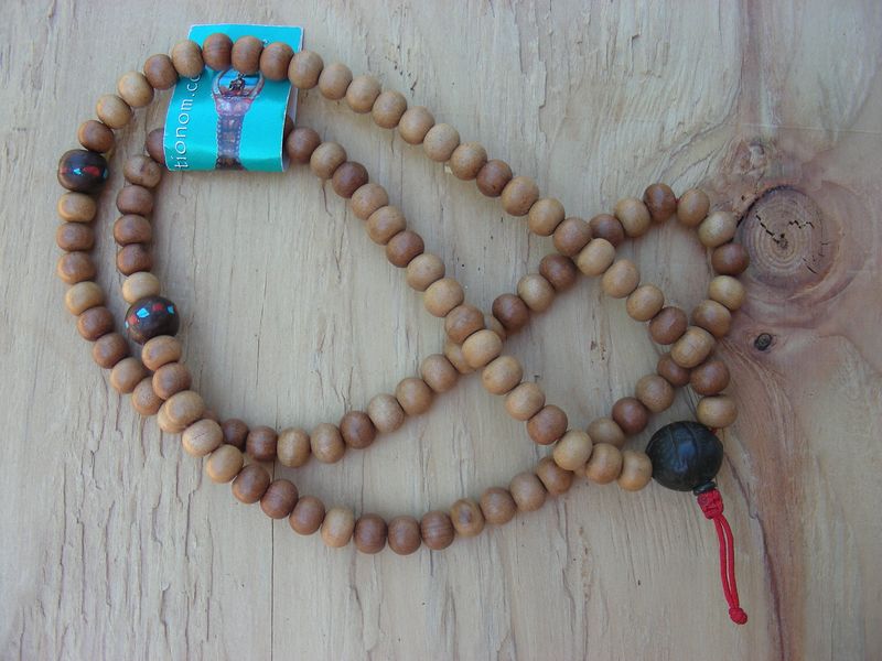Sandalwood with nepali bodhi (turq/coral inlay); nepali bodhi guru bead.