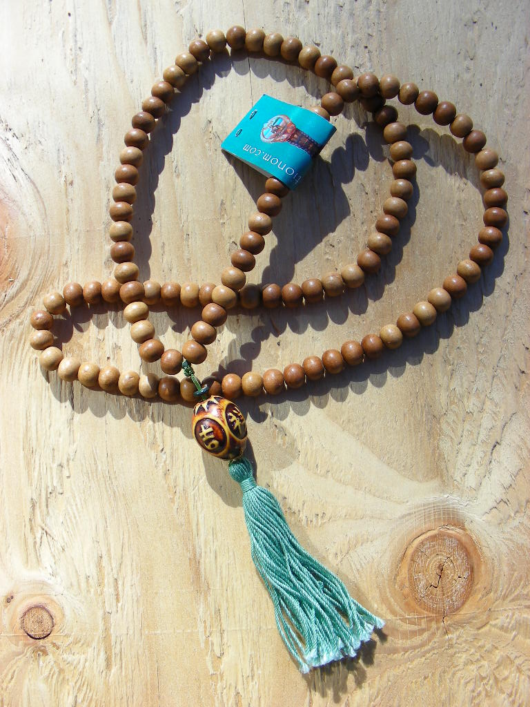 Sandalwood with chinese script guru bead.