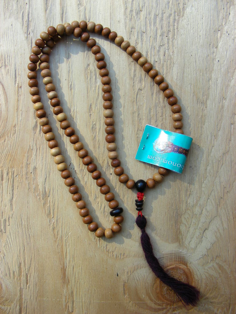 Sandalwood with rosewood disc dividing 54s and as guru bead.
