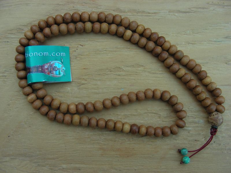 Sandalwood with Bodhgaya bodhi guru and turquoise tassel beads.